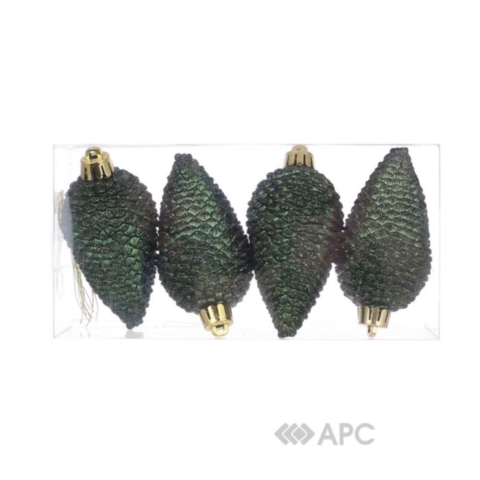 Каждое украшение имитирует классическую хвойную шишку с тщательно проработанным рельефом и имеет длину 8 см. Они представлены в глубоком, насыщенном цвете зеленой хвои. Украшения изготовлены из прочного пластика и покрыты матовой основой, усиленной блестящим глиттером, что создает эффект искрящегося инея или припорошенного снегом леса. Каждая шишка оснащена элегантным золотистым креплением, подчеркивающим ее праздничный вид. Этот набор — идеальный выбор для создания акцентов и добавления текстурного разнообразия вашей новогодней елке.