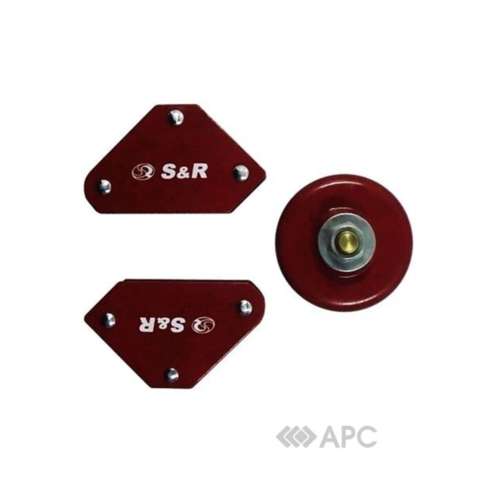 Небольшой функциональный набор магнитных держателей для сварки S&R 290403005 включает 3 элемента. Два держателя в комплекте позволяют зафиксировать деталь и создавать сварной шов под углами 45°, 90°, 135°. Третьим элементом является магнитная клемма массы, которая во многом удобнее и эффективнее прищепочных клемм. Элементы рассчитаны на силу рабочего тока на уровне 200 А.