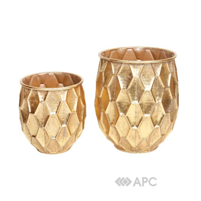 Набор металлических кашпо BonaDi 589-189 2 шт состоит из двух декоративных емкостей, предназначенных для размещения комнатных растений или создания разнообразных флористических композиций. Эти кашпо, изготовленные из металла с золотистым покрытием, отличаются прочностью и долговечностью, что делает их устойчивыми к внешним воздействиям и обеспечивает длительный срок эксплуатации. Дизайн набора выдержан в едином стиле, с различиями в размере (меньший - диаметр 22,5 см, высота 24 см, больший - диаметр 28,5 см, высота 31,5 см). Такой набор добавит стильного акцента в интерьер гостиной, кухни, офиса или летней террасы, позволяя гармонично интегрировать зелень в пространство и создавать уютную атмосферу.