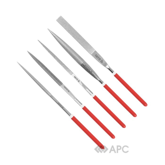 Набор Yato YT-6156 состоит из пяти алмазных надфилей разной формы. Является универсальным набором для ручной сверхточной обработки металла и других твердых материалов. Длина каждого надфиля составляет 180 мм. Подойдет для широкого спектра слесарных задач. Ручки удобной длины делают работу простой и комфортной.
