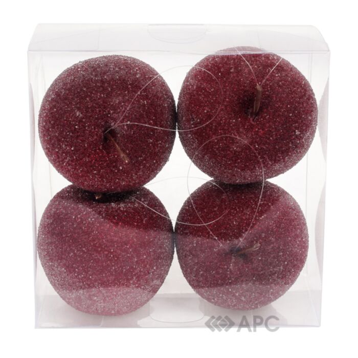 Набор подвесных декоративных яблок BonaDi 130-407 8,5 см 4 шт можно повесить, как на елку, так и поставить на стол или журнальный столик, изящно украсив декоративными стилизованными подсвечниками, новогодним венчиком и застелив рождественскую скатерть. Украшения изготовлены из пенопласта, цвет темно-красный декорирован бусами-сахаром, в набор входит 4 яблока.