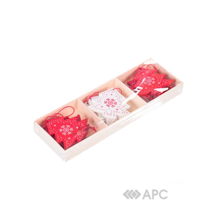 Набор подвесок "Елочки" Elisey 0451j 9 шт можно повесить, как на елку, так и поставить на стол или журнальный столик, изящно украсив декоративными стилизованными подсвечниками, новогодним венком и застелив рождественскую скатерть. Украшения изготовлены из древесины, набор состоит из 9 елочек.