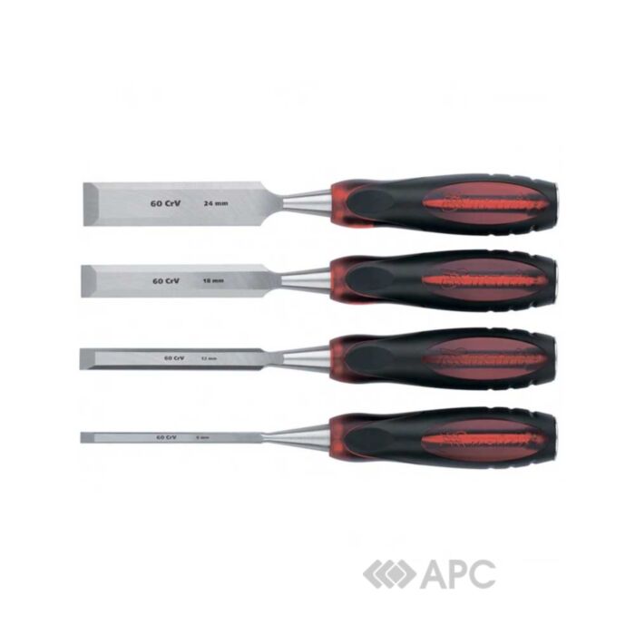 Набор стамесок Matrix Тигровый глаз 244329 поможет справиться с различными видами столярных работ. Чем меньше ширина полотна, тем для более деликатной работы подойдет инструмент. В набор входит 4 стамески (6,12,18 и 24 мм). Полотно изготовлено из прочной хром-ванадиевой стали, твердость которой 60 HRc. Стамески можно использовать, как долото, поскольку ручка сделана из ударопрочного пластика, который выдержит удары молотком. Также на кончике ручки является металлический затыльник по которому нужно бить молотком. Выбирайте набор стамесок Matrix Тигровый глаз 244329 и умело работайте с древесиной.