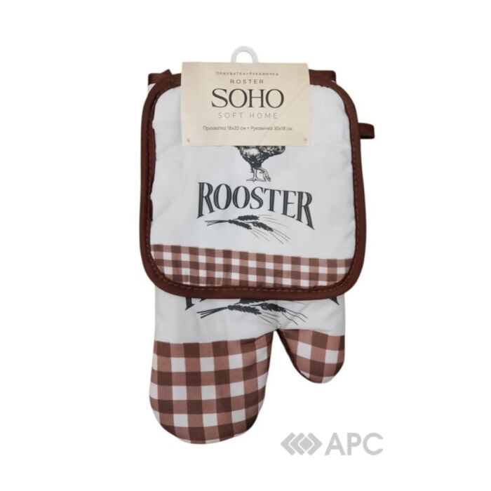 Набор прихватка и перчатка Soho Rooster — это комплект, выполненный в стильном, современном дизайне. Изготовлен из высококачественного материала — 100% хлопка. Все 2 элемента не только практичны, но и эстетичны, создают на кухне атмосферу домашнего уюта и тепла. Они станут незаменимыми помощниками в приготовлении пищи и защите Ваших рук. Продукция бренда характеризуется отличными эксплуатационными свойствами, долговечностью и устойчивостью к многократной стирке. Размер прихватки: 18х20 см, перчатки: 30х18 см. Купить набор перчатки и прихватка Soho Rooster можно в интернет-магазине АРС с доставкой по всей Украине — Киев, Харьков, Львов и др.