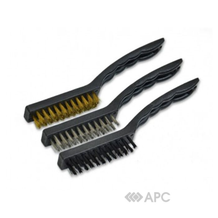 Набор щеток Spitce 18-351 230 мм 3 шт. входит в обязательный арсенал каждого мастера. Пригодится он и покупателям, которые желают осуществить ремонтные работы самостоятельно. Комплект из з щеток с разной щетиной позволит обрабатывать поверхности от ржавчины, старой краски, лака и грязи с любым уровнем деликатности. Щетка с щетиной из нейлона имеет более мягкое действие, а латунь и сталь справятся с самыми сложными задачами. Удобная форма изделия позволяет обрабатывать такие труднодоступные места, как углы, края и швы.