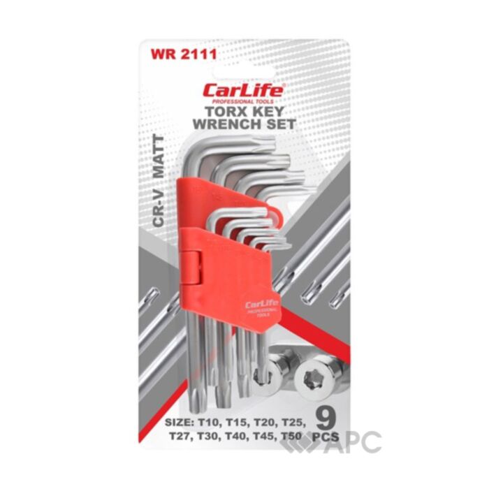 Набор торцевых ключей CarLife WR2111 с отверстием 9 шт – это ручной инструмент для проведения ремонтных работ. Стальная хром-ванадиевая конструкция обеспечивает долговечность инструмента, а полированная поверхность защищает его от коррозии. Шестигранный ключ с отверстием идеально подходит для использования в розетках с выступающим штифтом, а заземленные наконечники обеспечивают идеальное подключение розетки. Все ключи компактно сложены в пластиковом открытом контейнере. Комплект насчитывает 9 ключей размерами: Т10, Т15, Т20, Т25, Т27, Т30, Т40, Т45, Т50.