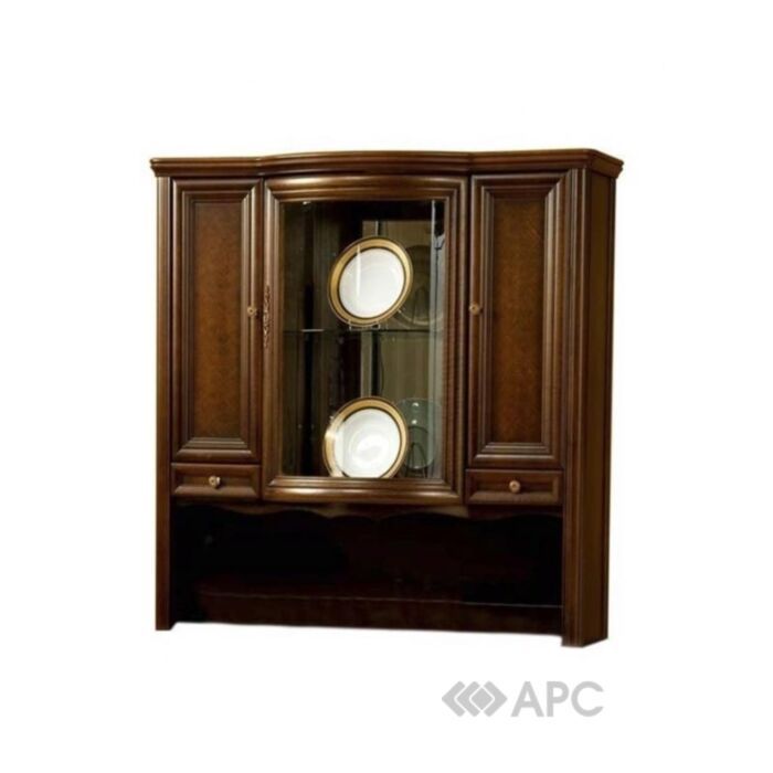 Материалы изготовления натуральные. Корпус изготавливается из МДФ, ламинированной шпоном ольхи; фасад - МДФ, ламинированная шпоном вишни; рамочный фасад - массив ольхи; ножки - массив ольхи и бука. Ручки металлические, цвет - "латунь". Витрины комплектуются прозрачным глянцевым стеклом.
