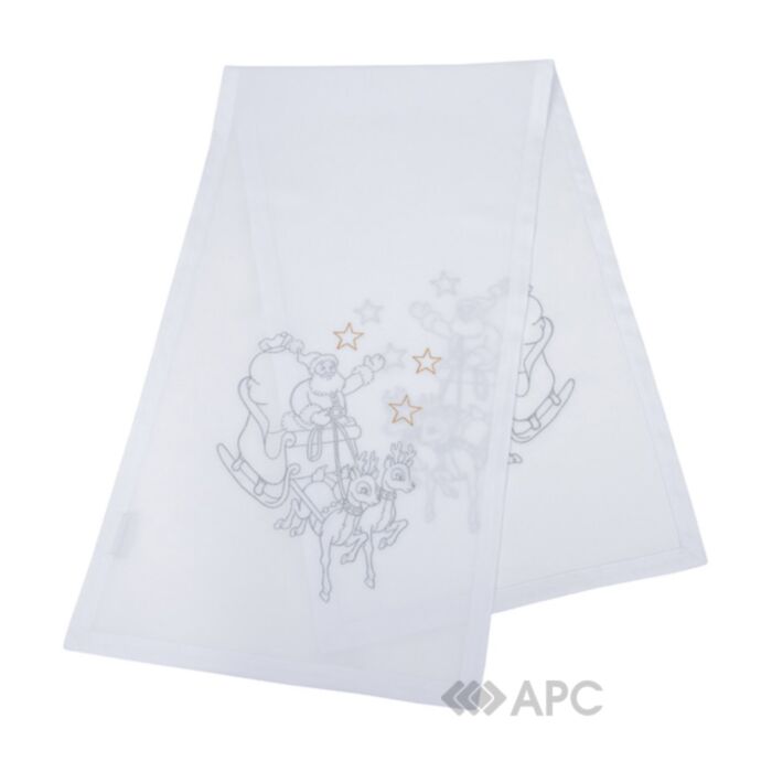 Наперон вышитый Limaso NPV016-40 Упряжка Санты 40*140 с — это узкая и длинная дополнительная скатерть, которая стелится поверх основной. Синтетический состав изделия, которое производится из полиэстера, существенно увеличивает длительность его службы. Оно практичное, неприхотливое в уходе и не требует специальных условий для хранения, как его натуральные аналоги. Такой домашний текстиль может быть как частью композиции, так и служить отдельным самостоятельным украшением стола. Его новогодний мотив создает праздничную атмосферу и всегда актуальный в тематическом декорировании помещения.