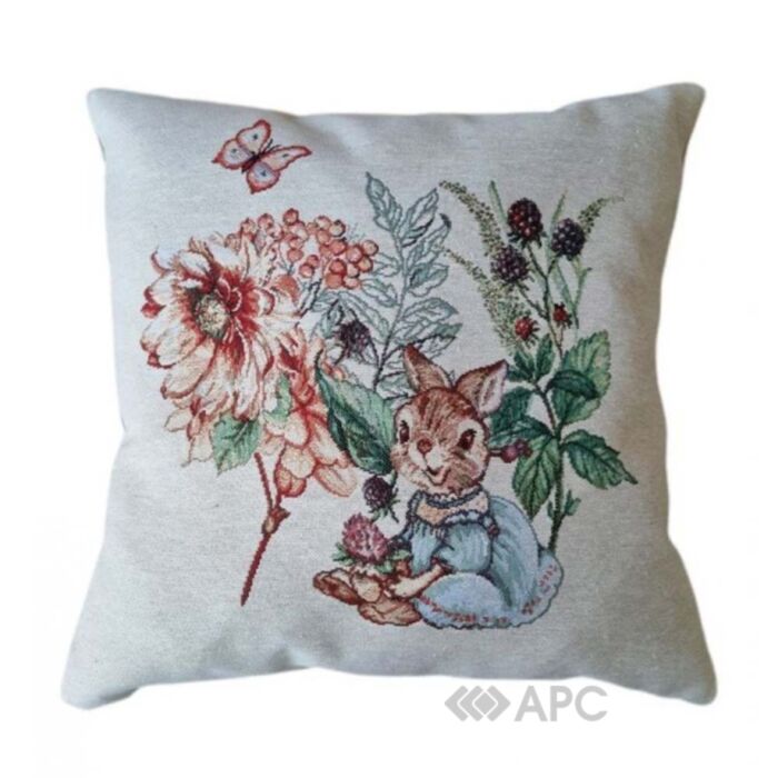 Наволочка декоративная Прованс Уют Зайчатко – удачно впишется практически в любой интерьер, дополнит его теплом и уютом. Изготовлен из гобеленовой ткани, состоящей из 55% хлопка и 45% полиэстера, она не только красива, но и отлично будет защищать любимые подушки от загрязнения, легка в уходе и имеет долгий срок эксплуатации.