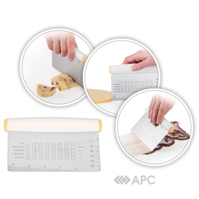 Удобный нож для нарезки изделий из теста, и дозирования кремов, шоколода и тому подобное. Незаменим на кухи, ведь имеет разного рода обозначения для измерения.