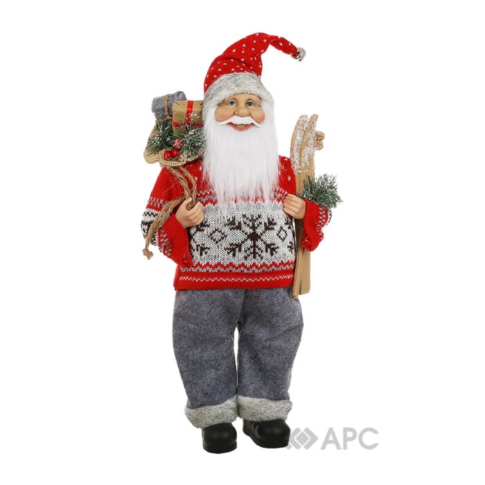 Новогодняя игрушка Санта BonaDi 45 см красная с серым — это настоящее воплощение духа праздника и сказочной атмосферы в декоративной фигурке. Она будет вызывать улыбку у детей, взрослых и гостей дома. Представляет собой статуэтку Санты с мешком, полным подарков и небольшой, украшенной снегом елкой в руках. Цветовая гамма в белых и серебристых оттенках идеально дополнит любой интерьер и станет его элегантным акцентом.