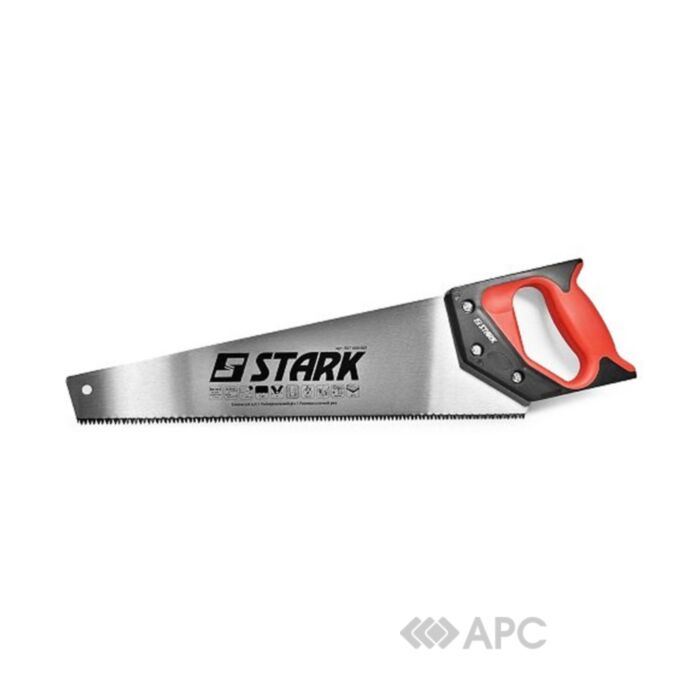 Ножовка Stark 507400007 предназначена для обработки дерева и деревянных заготовок. Подойдет для того, чтобы быстро и точно отпилить ветки дерева, распилить доску, плинтус, ДПС плиту или другой подобный материал. Инструмент изготовлен из стали марки HCS65 (сталь с высоким содержанием углерода). Материал сочетает в себе гибкость и устойчивость к интенсивным нагрузкам. Зубья пилы разведены таким образом, чтобы исключить трение между полотном ножовки и краем пропила.