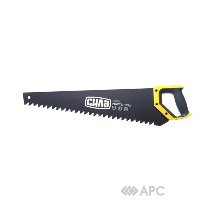 Ножовка по пенобетону Сила стандарт 320631 550 мм является практичным и необходимым элементом любого масштабного строительства. Одним из достоинств пенобетонных блоков является возможность формирования необходимой формы, в частности, возможность без особых усилий распилить большой блок, подгоняя размер под необходимые параметры. Важно следить, чтобы блок был сухим; если блок натянет влаги, то ножовка будет вязнуть в блоке. Также, не стоит спешить, чтобы полотно не уходило в сторону. Обычно, данный тип ножовки используется в комплексе со специальным угольником или стуслом. Инструмент прекрасно показал себя при усиленном использовании, поэтому можно быть уверенным, что ножовка прослужит долго.