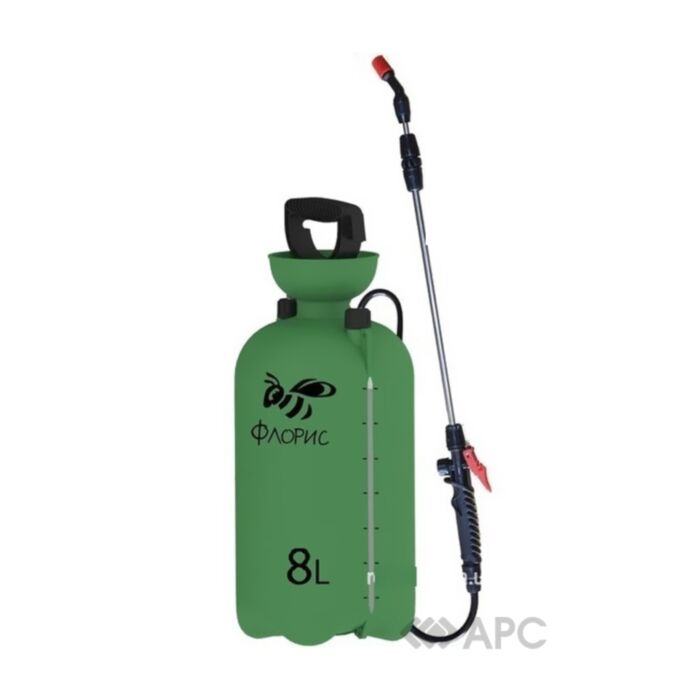 Опрыскиватель пневматический Флорис ОП-218Ф 8 л зеленый - это практичное и универсальное устройство, которое пригодится для широкого спектра как садово-огородных, так и бытовых работ. С его помощью можно осуществить эффективную защиту растений от вредителей и болезней, а также бороться с сорняками путем распиливания специальных растворов. Опрыскиватель оснащен телескопической ручкой. Он подойдет для дезинсекции в жилых, промышленных и подсобных помещениях, мытья окон, стен и машин.