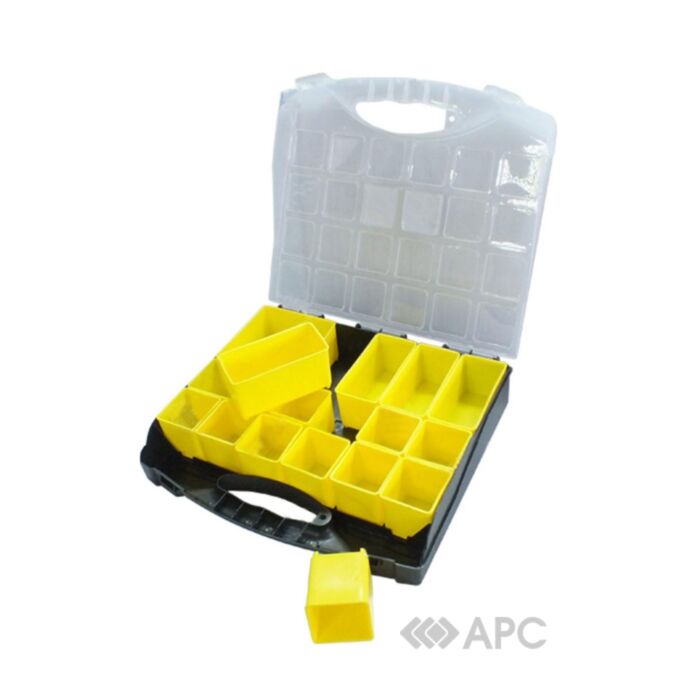 Органайзер Сталь отлично подходит для хранения мелких деталей, креплений, инструментов и других необходимых Вам предметов. С помощью отсеков различного размера, которые вынимаются удобно разместить и упорядочить необходимые мелочи. Благодаря прозрачной крышке Вы с легкостью быстро найдете необходимую деталь. Органайзер выполнен из пластика с удобной ручкой, которая обеспечивает его легкость, мобильность и удобство в транспортировке. Данный органайзер можно использовать в качестве дополнения для ящика для инструментов.