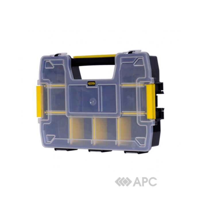 Наверное каждый мастер сталкивался с тем, что не мог найти нужную гайку или болт в коробке с инструментами. И на поиски нужной детали уходило много времени и сил. Ведь часто бывает, что малейшие детали оказываются на самом дне. Чтобы избежать таких ситуаций, нужно использовать органайзер — ящик с отсеками для удобной группировки фурнитуры. Благодаря Stanley STST1-70720 вы с легкостью найдете нужную вам деталь. Корпус изготовлен из пластика, который славится своей легкостью, а это значит, что органайзер легко носить с собой. Данную модель можно использовать как самостоятельный элемент для хранения, или как дополнение к ящику с инструментам