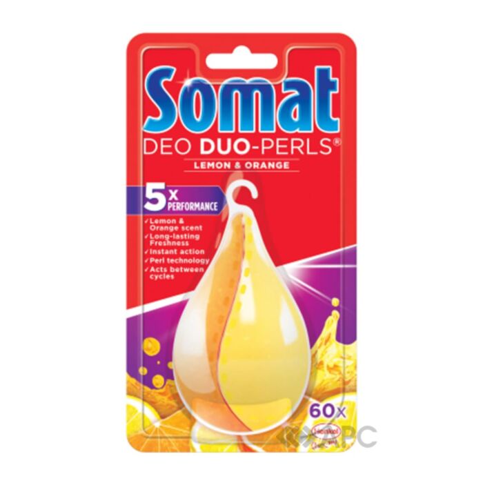 Освежитель для посудомоечных машин Somat Deo Duo-Pearls Lemon & Orange 17 г - это инновационное решение для поддержания свежести внутри прибора между циклами мытья. Он эффективно нейтрализует неприятные запахи, которые могут накапливаться от остатков пищи и влажности, оставляя приятный аромат лимона и апельсина. Он разработан в формате Duo-Pearls, что означает наличие двух отдельных камер с ароматическими компонентами, которые высвобождаются постепенно, обеспечивая длительный эффект свежести. Somat Deo не маскирует запахи, а активно их устраняет, обеспечивая гигиеническую чистоту воздуха внутри прибора.