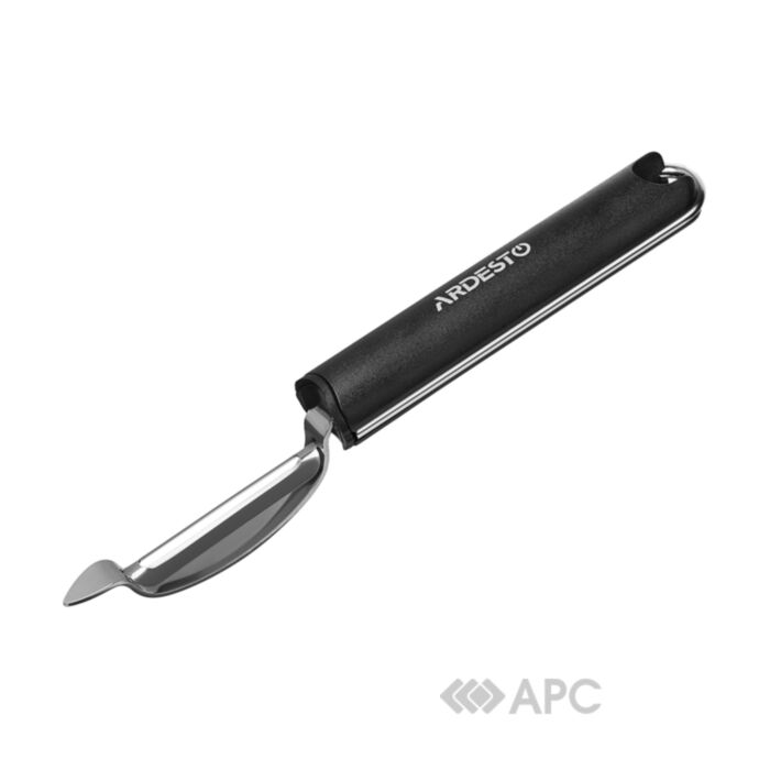 Овощечистка Ardesto Black Mars AR2009SA предназначена для быстрого и легкого удаления кожуры на овощах и фруктах, чешуи из рыбы. Особенностью является то, что лезвие изделия изготовлено из высококачественной нержавеющей стали, имеется отверстие в ручке для удобного хранения на крючках. Именно поэтому такое изделие будет незаменимо на кухне любой хозяйки: оно сэкономит время на приготовлении любимых овощных салатов, закусок и т.д.