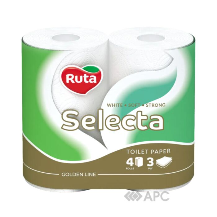 Туалетная бумага Ruta Selecta — это универсальное средство, предназначенное для интимной гигиены. Производится из натуральной, 100% целлюлозы, белого цвета, без запаха. Структура изделия очень мягкая и прочная, при этом обладает высокой влагопоглощающей способностью, легко растворяется в воде, трехслойного типа. Присутствие тиснения надежно скрепляет слои между собой, перфорация делит рулон на равные отрывы, позволяющие экономно использовать продукцию. Упаковка вмещает 4 штуки.