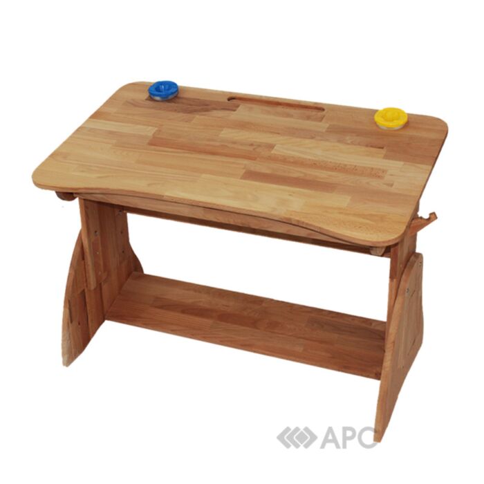 Модель оснащена двумя углублениями для стаканчиков-непроливаек и одним углублением для карандашей и ручек. Удобная широкая подставка для ног позволяет занять максимально комфортное и правильное с ортопедической точки зрения положение во время занятий. Экологически чистые материалы, использованные при производстве парты гарантируют сохранность здоровья вашего ребёнка.