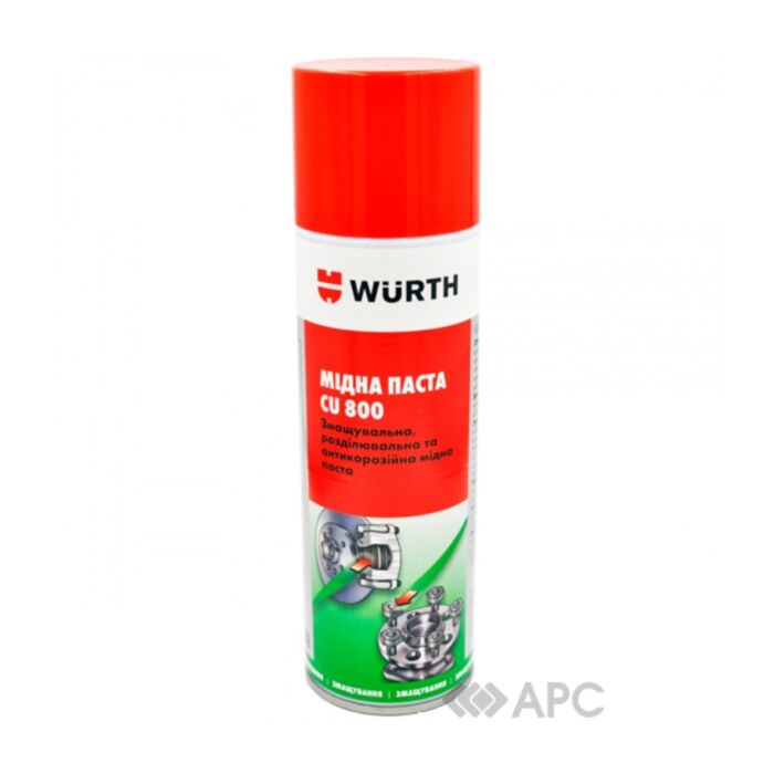 Паста-спрей медная Wurth 0893800 CU 800 - многофункциональное средство, с помощью которого можно смазывать, очищать детали, а также продолжать их срок службы. Предупреждает появление ржавчины, помогает справиться с деталями, на которых уже развилась коррозия. Применяется для обратной стороны колодки тормозного диска, для защиты контактов акумулятора. В своем составе не содержит силикона, кислот и смолы.