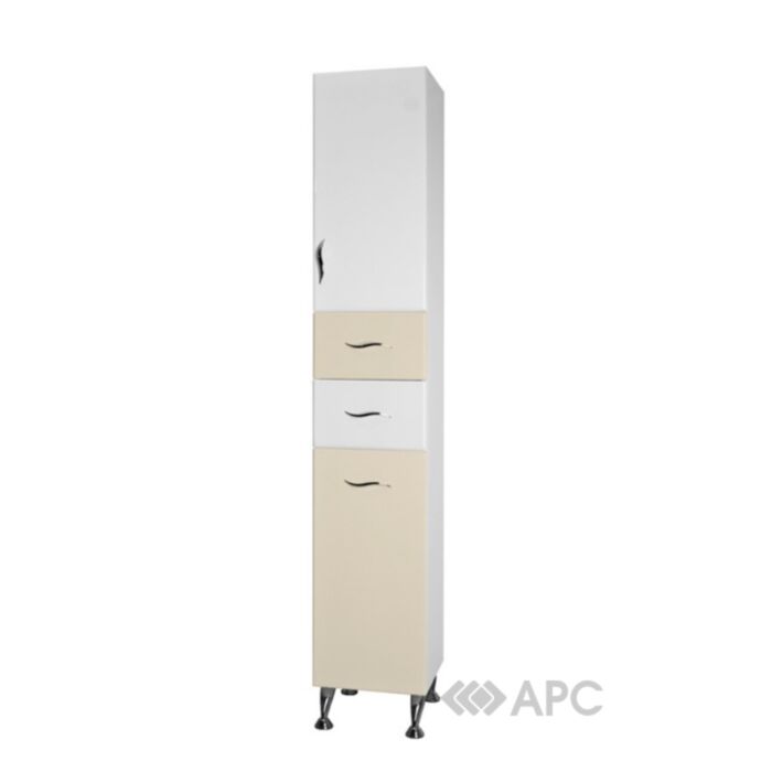 Конструкция пенала включает две дверцы, две полки, два выдвижных ящика. В нижней части пенала корзина для белья.