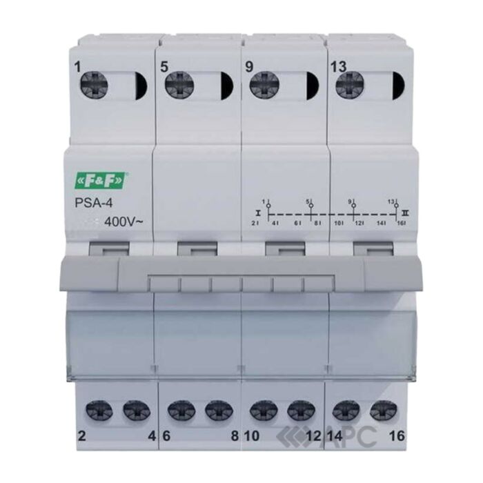 Переключатель нагрузки F&F — это прибор от польского производителя, который поможет переключить питание из основного на резервное. Реверсивный рубильник четырехполюсного типа подключается по схеме 1-0-2. Устанавливается на дин-рейке в электрощиток. При использовании данной модели нет риска отключения из-за прекращения подачи электропитания, ведь он изолирует как первичные цепи питания, так и резервные. Номинальный ток 40 А, рабочее напряжение 230/400 В, частота 50/60 Гц.