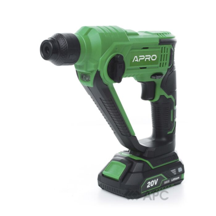 Перфоратор аккумуляторный APRO 20CH 895442 обеспечит мобильность и автономность работы. Наличие аккумулятора делает инструмент независимым от длины сетевого кабеля и возможных просадок напряжения. Перфораторы — категория электроинструмента, который рассчитан на пробитие отверстий буром по принципу зубила. Двигатель перфоратора обеспечивает возвратно-поступательные движения ударника, вследствие чего рабочий материал разрушается от удара. Применяется для пробивания сквозных отверстий, штробления стен и других поверхностей. Главным образом он будет полезен при работе с материалами, которые тяжело поддаются обработке. К примеру: бетон, камень, кирпич. Для этих целей он подходит лучше всего, оставляя далеко позади электрические ударные дрели. Главным отличительным признаком перфоратора по отношению к ударной дрели является то, что у последней ударный эффект достигается чисто механическим путем, а в перфораторе для этого используется пневматическое (либо электромеханическое) устройство. За счет этого перфораторы обладают большей мощностью и более приспособлены для описанных операций. Номинальное напряжение аккумулятора: 20 В. Энергия удара: 1,5 Дж. Расположение двигателя: горизонтальное. Режимы работы: сверление, сверление с ударом. Диаметр сверления: 10 мм для бетона, 8 мм для стали, 16 мм для дерева. Встроенная подсветка. Режим реверса.