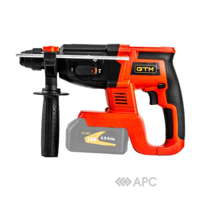 Аккумуляторный перфоратор GTM RHC18/22BL обеспечит мобильность и автономность работы. Наличие аккумулятора делает инструмент независимым от длины кабеля. Бесщеточный двигатель перфоратора обеспечивает возвратно-поступательные движения ударника, в результате чего рабочий материал разрушается от удара. Применяется для пробивки сквозных отверстий, штробления стен и других поверхностей. Главным образом он будет полезен при работе с трудно поддающимися обработке материалами: бетон, камень, кирпич.
