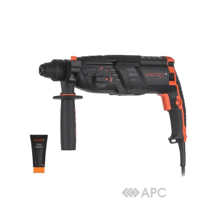 RH-100 — прямой перфоратор для работы по бетону, кирпичу, камню, а также для смежных заданий небольшой сложности: смешивание небольших количеств строительного раствора или красок, корректирующий демонтаж. В базовую комплектацию входят кейс для хранения инструментов и насадок. Сила удара RH-120MB составляет 2.8 Дж с максимальной частотой 4850 уд/мин. Конструкция и материалы подобраны таким образом, чтобы исключить перегрев перфоратора даже при интенсивном использовании. Модель поддерживает три режима работы: обычное сверление, ударный режим, комбинированное сверление с ударом. Щеточный реверс обеспечивает одинаковую эффективность при работе в обоих направлениях. Среди дополнительных мер для комфортного использования можно выделить ограничитель сверления, кнопку с плавным пуском, которая позволяет регулировать интенсивность удара; предохранительная муфта срабатывает при заклинивании бура, что защитит оператора от возможных травм. Удобная обрезиненная ручка исключает выскальзывание и обеспечивает надежный хват. Благодаря существенной длине сетевого кабеля в 4 м обеспечивается высокая мобильность работы.