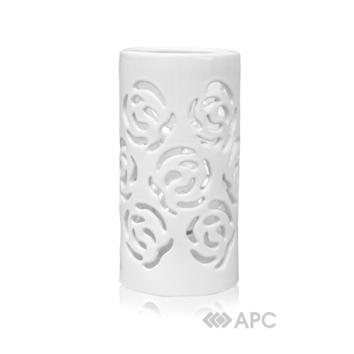 Керамический подсвечник в виде классического цилиндра с резными цветами - символ домашней красоты и гармонии с чудом живого огня внутри. Такое украшение будет выглядеть уместно в любом интерьере.