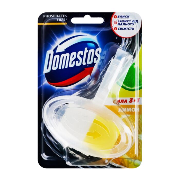 Подвесной туалетный блок Domestos Лимон 35 г - простое в использовании и действенное средство для нейтрализации неприятных запахов, дезинфекции, длительного сохранения чистоты в туалете. Легко очищает от загрязнений и известнякового налета даже в труднодоступных местах. Активная пена окрашивает воду, обладает легким ароматом, защищает поверхность от патогенной флоры (бактерий и микробов).