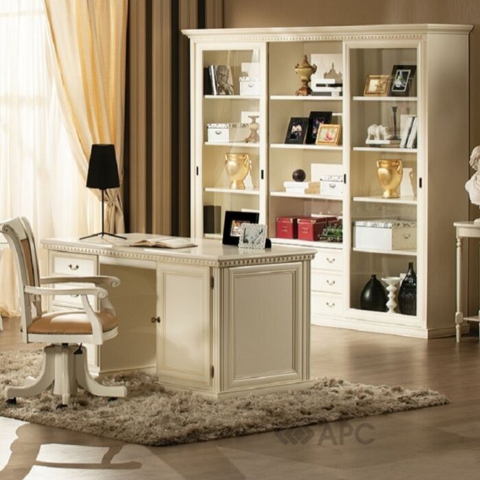 Статусный письменный стол изготовлен в стиле «классик». Элегантность и роскошь итальянской классики сочетается в нем с современным качеством, надежностью и комфортом. Этот стол украсит и домашний кабинет, и кабинет руководителя.