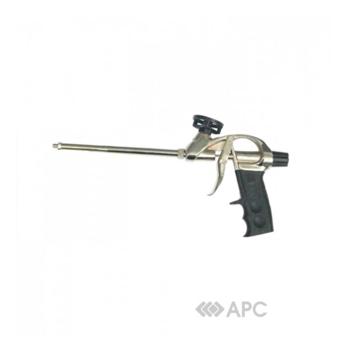Пистолет для пены SF Professional 67312 относится к серии «Бригадир» — профессионального инструмента для использования полиуретановой пены. Пистолет работает в ручном режиме. Скорость и интенсивность подачи монтажной пены регулируется нажимом на курок и положением регулирующего винта. Корпус и ручка выполнены из металла, что является отличительной чертой надежного высококачественного инструмента. Качественные пластиковые пистолеты тоже встречаются, но с металлическим Вы не будете переживать за долговечность Вашего инструмента. Пистолет для монтажной пены SF Professional 67312 — помощник для знатоков.