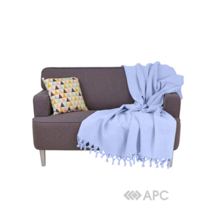 Плед Saheser вафелька 220*240 голубой выполнен из вафельного полотна, высококачественной ткани из 100% хлопка. Благодаря технике особого плетения поверхность пледа имеет структуру маленьких прямоугольников, напоминающих вафлю.