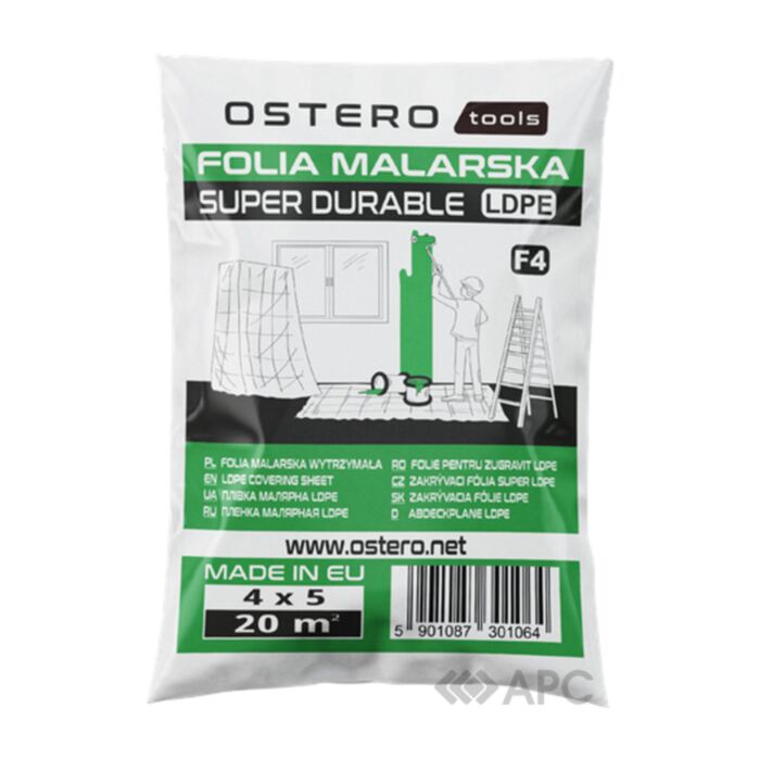 Защитная пленка Ostero SUPER DURABLE-90 F4 4*5 м защитит Вашу мебель, стены, пол и окна от попадания пыли, грязи и краски. Используется в качестве заслона между помещениями при проведении шлифовальных и других работ, связанных с интенсивным пылеобразованием. Полиэтилен хорошо притягивает пыль, что ускоряет оседание и исключает длительное наличие абразивных частиц пыли в воздухе. Купить высококачественную защитную пленку можно в нашем интернет-магазине с доставкой в любую точку Украины.