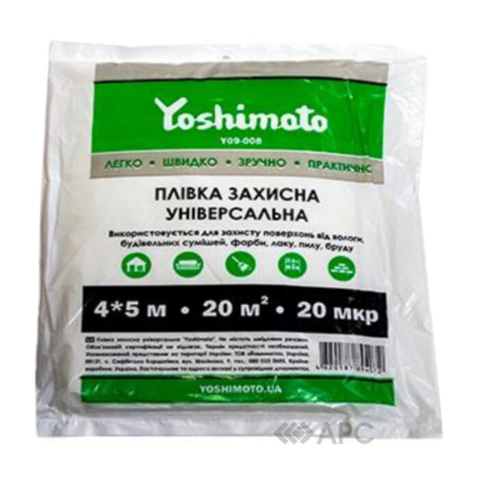 Пленка защитная универсальная Yoshimoto Y09-008 20 мкр 4*5 м защитит Вашу мебель, стены, пол и окна от попадания пыли, грязи и краски. Используется в качестве заслона между помещениями при проведении шлифовальных и других работ, связанных с интенсивным пылеобразованием. Полиэтилен хорошо притягивает пыль, что ускоряет оседание и исключает длительное наличие абразивных частиц пыли в воздухе. Купить высококачественную защитную пленку можно в нашем интернет-магазине с доставкой в любую точку Украины.