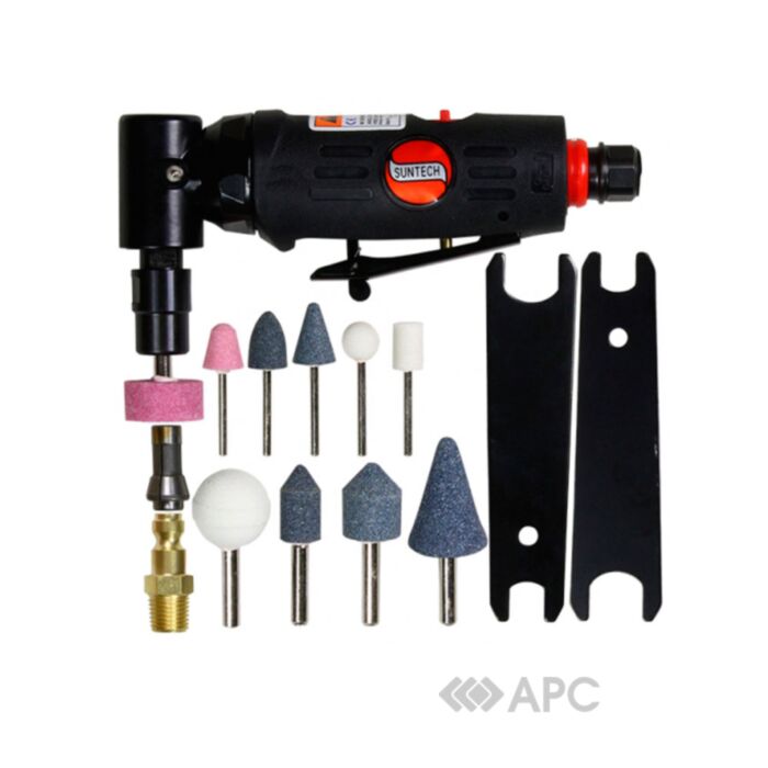 Пневматическая болгарка Suntech SM-52-5227K оснащена устойчивым металлическим корпусом, который защитит рабочую часть от различных механических повреждений. Шпиндель, который имеет возможность набирать большое количество оборотов в момент работы, поможет качественно выполнить необходимую работу. Удобная рукоятка поможет удобно удерживать шлифовальную машину во время работы и уменшить уровень вибраций на руки оператора. Пневматическая шлифмашина SM-52-5227K имеет рычаг запуска шпинделя, который установлен на нижней части рукоятки Переходной штуцер, который идет в комплекте, поможет присоединить необходимую насадку. Для подсоединения автоматической подачи воздуха на задней части рукоятки имеется отверстие, что предоставит какие-либо неудобства при работе. Комплектация (цанга 3 мм, 5 шлифовальных штифтов 6 мм, 5 шлифовальных штифтов 3 мм)