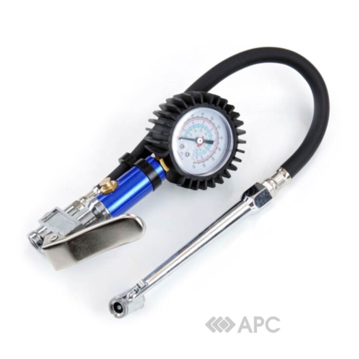 Пневмопистолет для подкачки колес грузовых автомобилей APRO 850084 с манометром используется для автомобильных шин, для проверки давления в них и спускания избыточного воздуха. Изделие широко используется на заправках, в автомастерских и на станциях технического обслуживания. Подкачка колес просто необходима в случае спускания шины, а также тогда, когда в них опускается давление. Благодаря наличию манометра для шин показатели давления легко проконтролировать. Оперативно проведенные замеры давления и осуществленная подкачка увеличивают срок службы шинам автомобиля и экономят деньги автовладельцам. Пневмопистолет с удлиненным наконечником и производительностью от 85 до 200 л в минуту. Пневматическое соединение: 1/4".