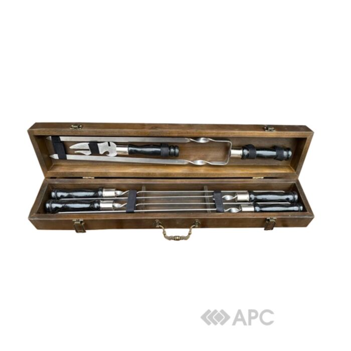 Подарочный набор Mzavod ШашлыКейс темный 6 предметов - это комплексное решение из шести высококачественных предметов, разработанных для эффективного и комфортного приготовления различных блюд на гриле и мангале.