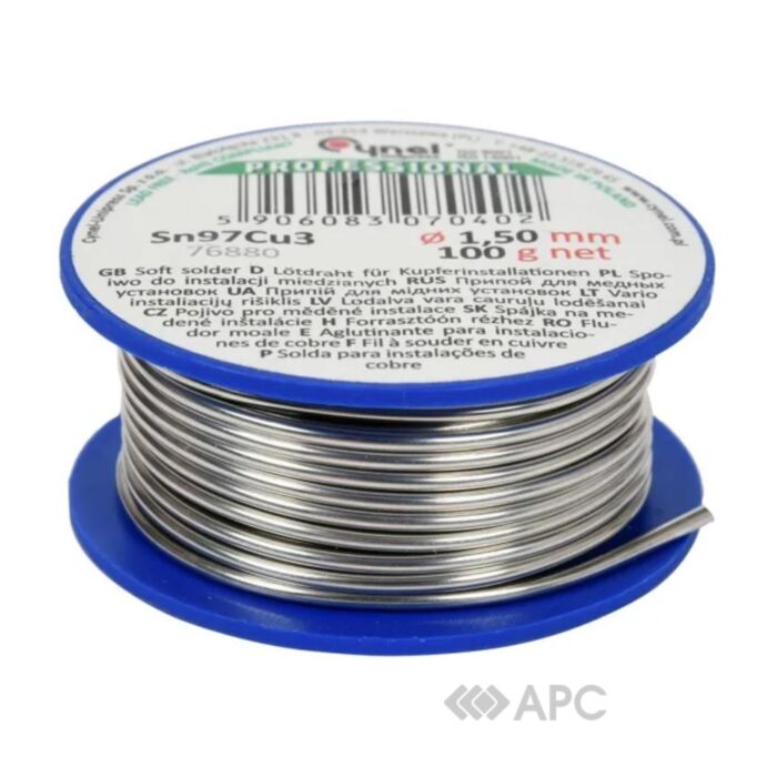 Припой Vorel Cynel 76880 1,5 мм 100 г — это связующее вещество, которое используется для мягкой пайки медных или латунных труб и фитингов в установках горячего и холодного водоснабжения, а также в системах центрального отопления. Температура плавления составляет от 220°C до 310°C. Для более эффективного и надежного результата в процессе мягкого припоя рекомендуется применять специальные флюсы и пасты. Используется изделие мягкой пайки медных или латунных труб и фитингов для систем горячего и холодного водоснабжения, а также в системах центрального отопления.
