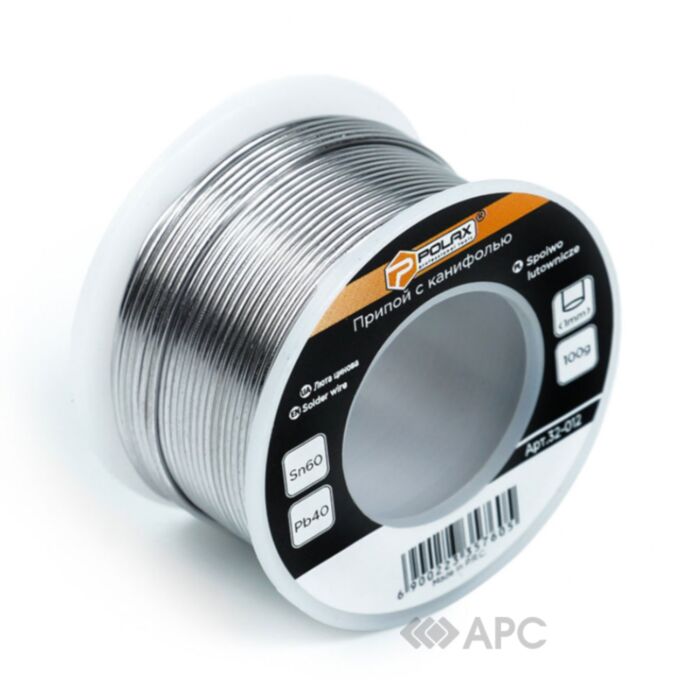 Припой из канифоля Polax 32-012 1 мм 100 г используется для припайки и соединения электрических узлов, металлических элементов между собой. Существенно повышает качество монтажа электрических коммуникационных систем, помогает в ремонте электроники. При нанесении на электрические проводники образуется надежное покрытие, защищающее соединение от воздействия внешней среды.