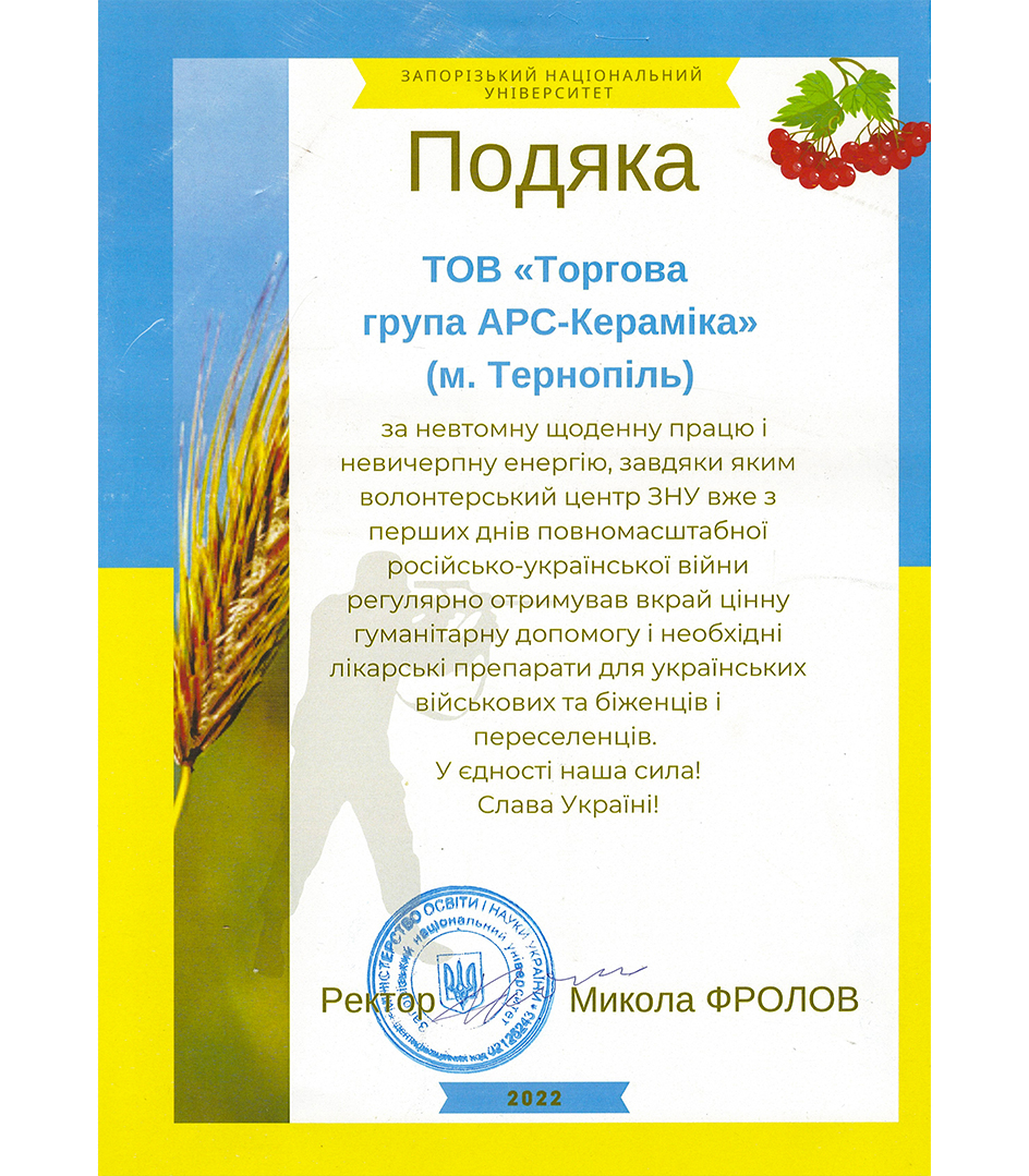 Висловлюємо щиру подяку компанії АРС за різносторонню допомогу, яку ви надаєте в умовах повномасштабного вторгнення. Ваша вагома підтримка благодійного фонду, яка охопила різні аспекти, включаючи фінансові, товарні та гуманітарні, дозволила нам подолати нестачу ресурсів і забезпечити необхідним людей, що опинились в скрутному становищі. Нам надзвичайно важливо мати такого надійного партнера, готового допомагати у найважчі моменти.
