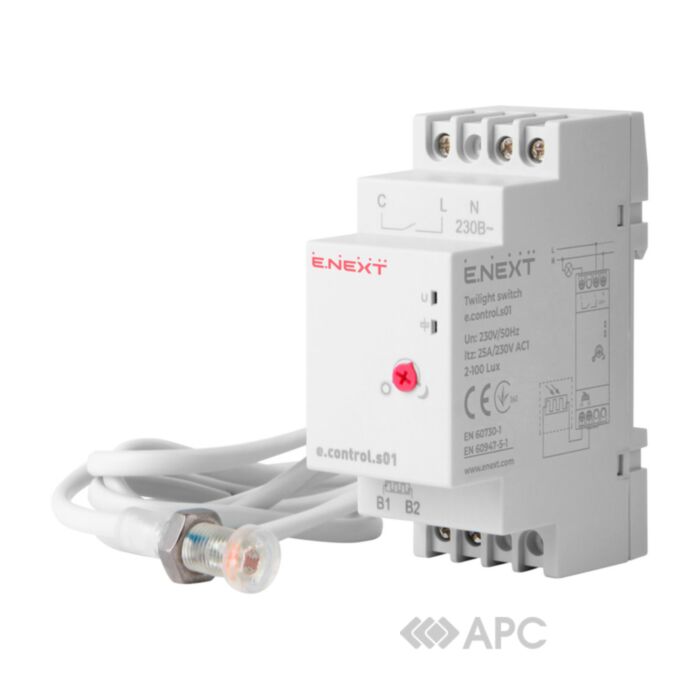 Реле сумеречное E.NEXT e.control.s01 i0310014 с внешним датчиком — это компонент блока электронных устройств, отвечающих за автоматизацию управления электрическими приборами в квартире, доме, офисе. В своей конструкции оно имеет фотодатчик, при воздействии света на на который отслеживается уровень светового излучения. Устройство автоматически включает и выключает осветительное и другое электротехническое оборудование в зависимости от уровня освещенности. Фотодатчик представлен первичным преобразователем. Он входит в структуру управляющей оснастки.