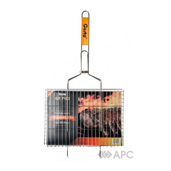 Решетка-гриль Gusto Time2Grill 65*35*25 см предназначена для приготовления блюд на открытом огне. Изготовлена из нержавеющей стали, проста в уходе, имеет длительный срок эксплуатации и надолго сохраняет эстетический вид. Деревянная ручка длиной 25 см не нагревается, обеспечивая комфортное использование у огня. Сетка устойчива к высоким температурам, не деформируется в процессе нагрева. Имеет кольцо-фиксатор, предотвращающее случайное открывание, и надежно сохраняет пищу внутри. Gusto Time2Grill добавляет удобства и комфорта в приготовлении пищи на природе.