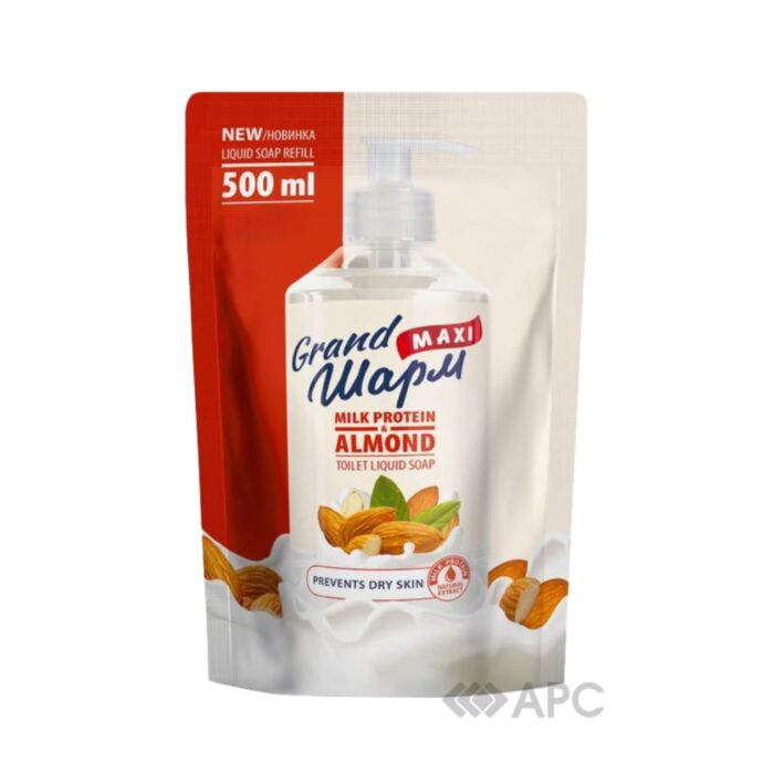 Жидкое мыло Grand Шарм Maxi Молочный протеин Миндаль 500 мл — это универсальное средство, подходящее даже для ежедневного использования. Нежное и мягкое действие компонентов миндаля на кожу обеспечивает увлажнение, очищение, придает ухоженный вид. Украинский производитель изготавливает продукцию из безопасных и качественных веществ, которые создают надежную защиту для вашего тела и рук. Имеет приятный аромат, что держится на теле. Объем товара 500 мл.
