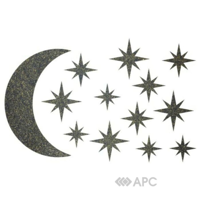 Преимуществом товара есть очень простое применение. Вам нужно лишь смазать основание клеем ПВА, и прикрепить декор к поверхности. После высыхания, можно продолжать наносить жидкие обои, создавая отличный декор. В комплект входят звезды трех размеров и луна в черном цвете с золотым вкраплением. Благодаря этому вы можете экспериментировать, создавать уникальные композиции в спальне, детской или гостиной.