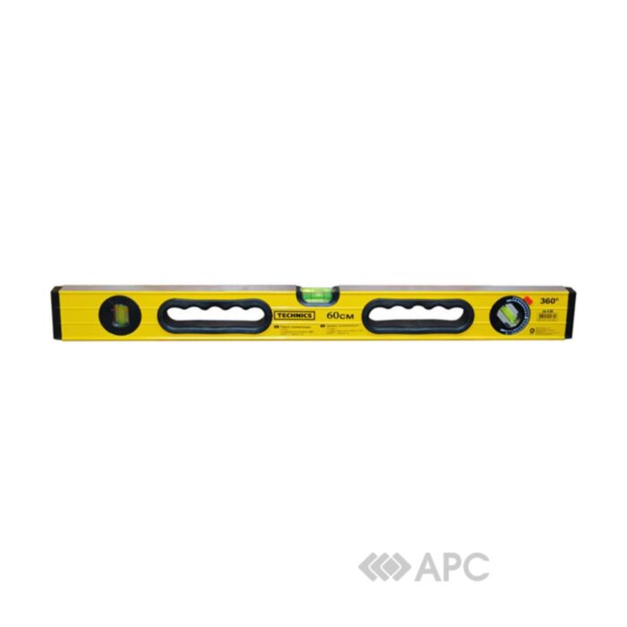 Строительный уровень Technics 14-310 поможет вам не только определить нет ли искажений на поверхности, но и измерить угол наклона относительно горизонта. Прочность корпуса увеличена за счет ребер жесткости. Толщина профиля составляет 1,5 мм. Две капсулы определяют угол 0 и 90 градусов, а третья — измеряет угол в диапазоне 360 градусов. Уровень Technics подойдет для использования каждому мастеру при строительно-ремонтных работах различного уровня сложности.