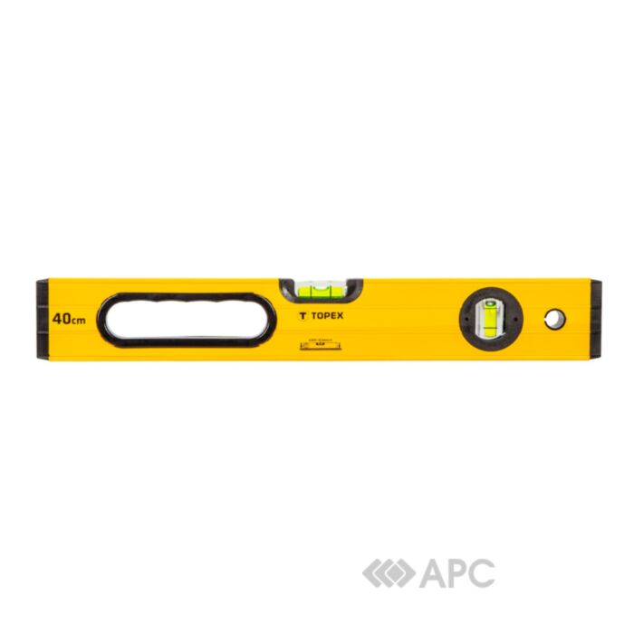 Алюминиевый уровень Topex 29C605 имеет три ампулы для определения неровностей: горизонтальных, вертикальных. Для удобства при работе и хранении на конструкции предусмотрены две ручки. Две заглушки с каждой стороны защищают уровень от повреждений в случае случайного падения. Надежность корпуса обеспечена за счет использования высококачественного алюминиевого сплава. Точность измерения инструмента варьируется в диапазоне 0,5 мм/м. Уровень Topex 29C605 подходит для бытового использования, а также для строительно-ремонтных работ.