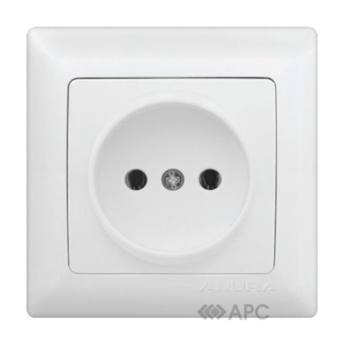 Розетка без заземления Anura AE01105 белая изготовлена из качественного пластика. Цвет изделия подойдет к любому интерьеру помещения. Розетка без заземления подходит для старых жилых домов и административных зданий, где не проводился капитальный ремонт или замена электропроводки, и нет заземления.